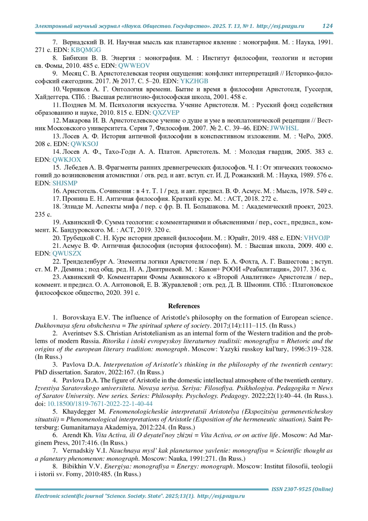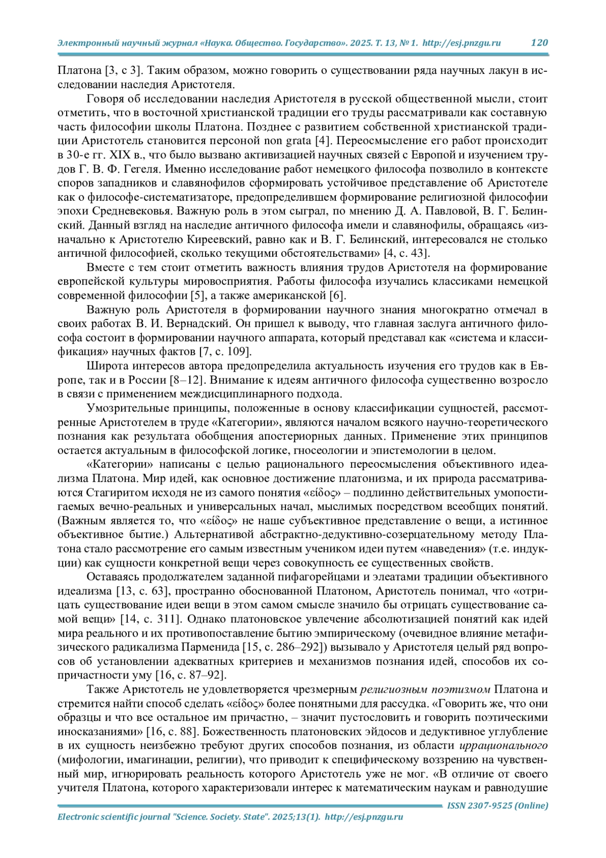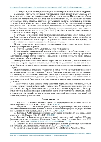 4. Павлова Д. А. Фигура Аристотеля в отечественной интеллектуальной атмосфере XIX века // Известия Саратовского университета. Новая серия. Серия: Философия. Психология. Педагогика. 2022. Т. 22, № 1. С. 40-44. DOI: 10.18500/1819-7671-2022-22-1-40-44 EDN: CCUKBK
