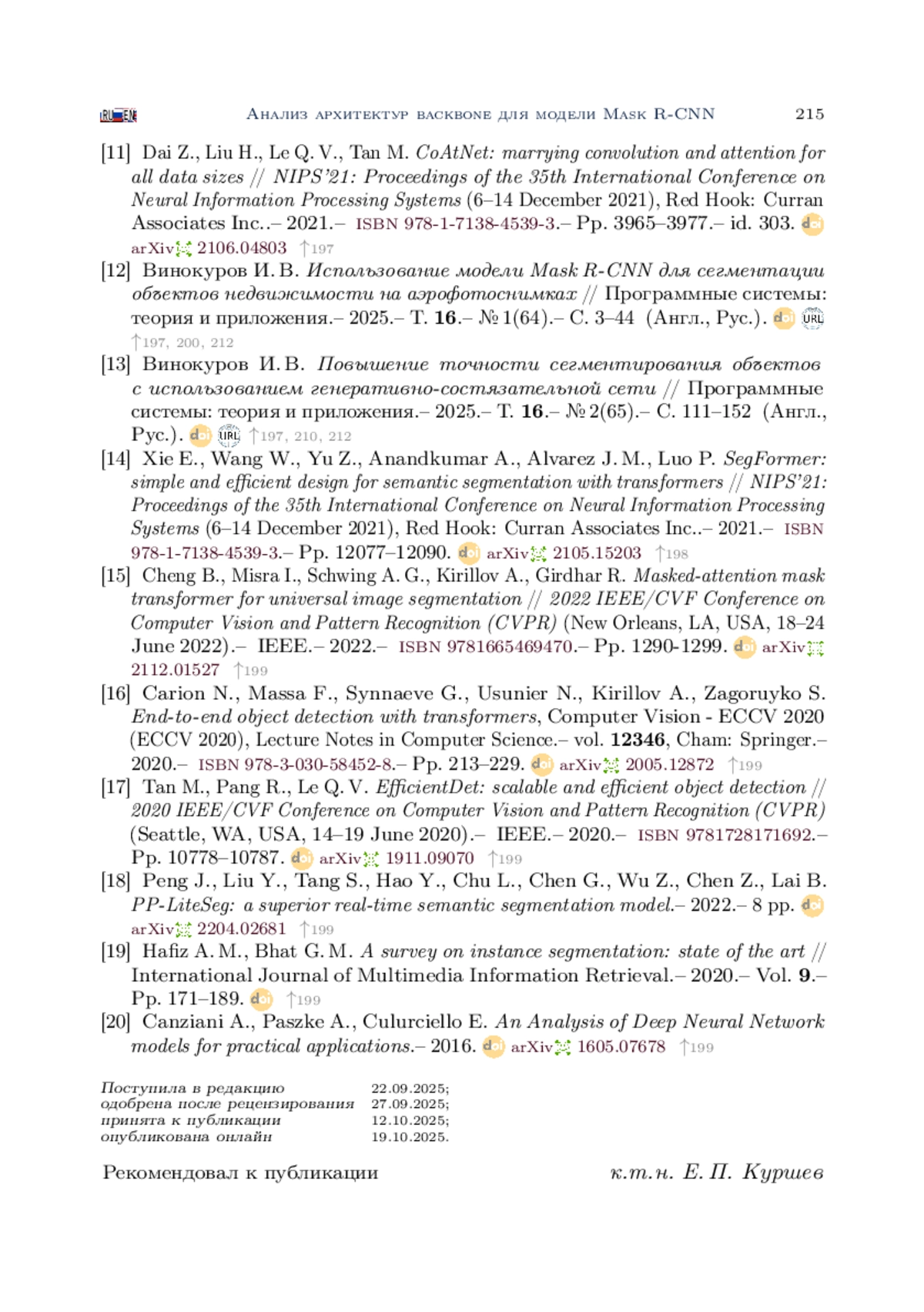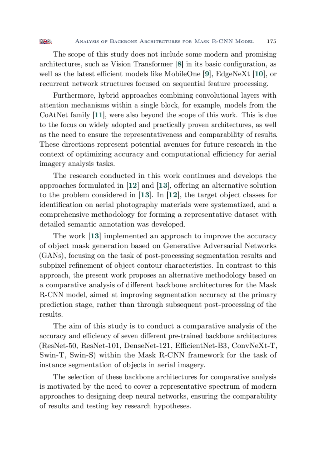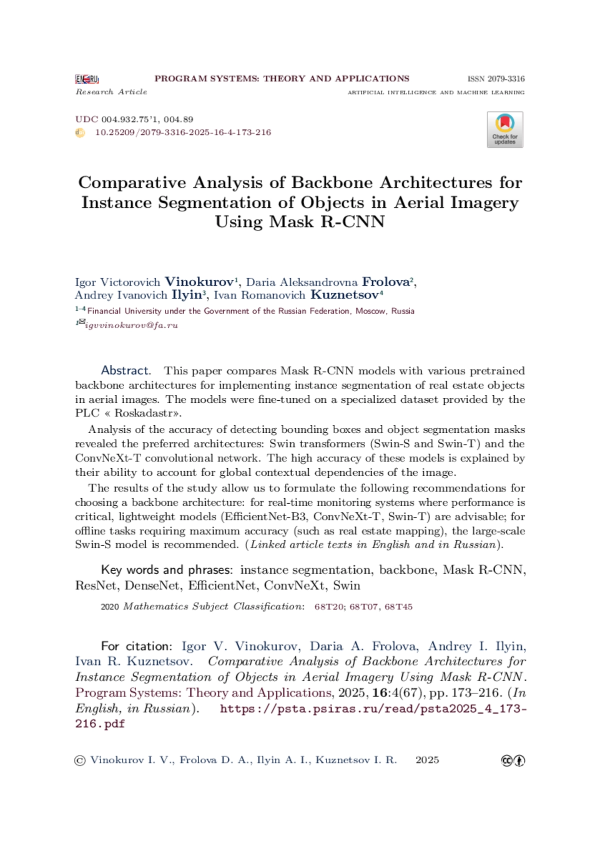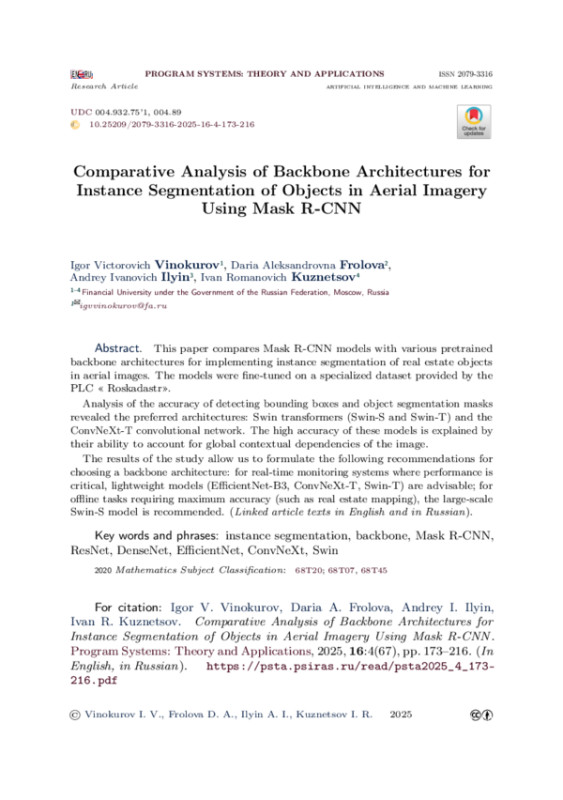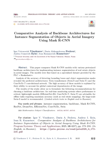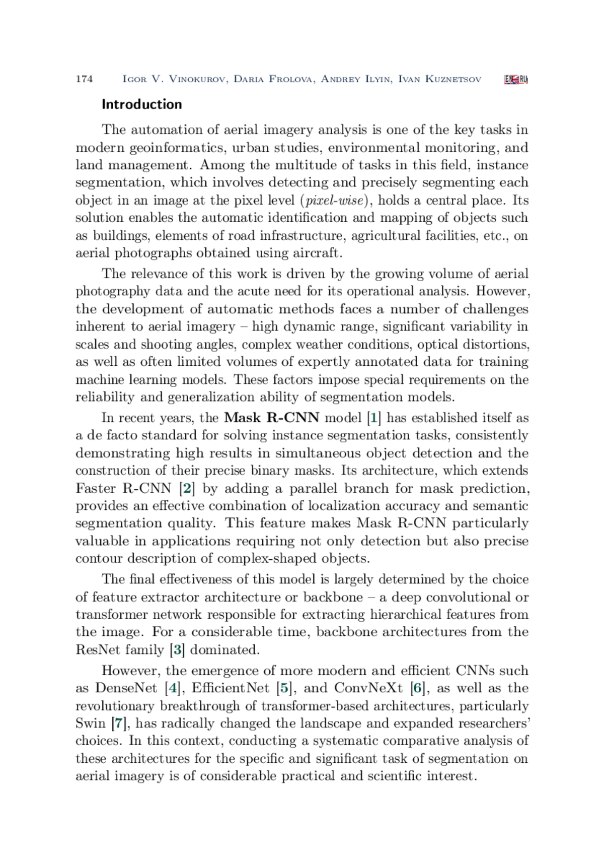 ВИНОКУРОВ И. В., ИЛЬИН А. И., КУЗНЕЦОВ И. Р., ФРОЛОВА Д. А. СРАВНИТЕЛЬНЫЙ АНАЛИЗ АРХИТЕКТУР BACKBONE ДЛЯ ИНСТАНС-СЕГМЕНТАЦИИ ОБЪЕКТОВ НА АЭРОФОТОСНИМКАХ С ИСПОЛЬЗОВАНИЕМ MASK R-CN