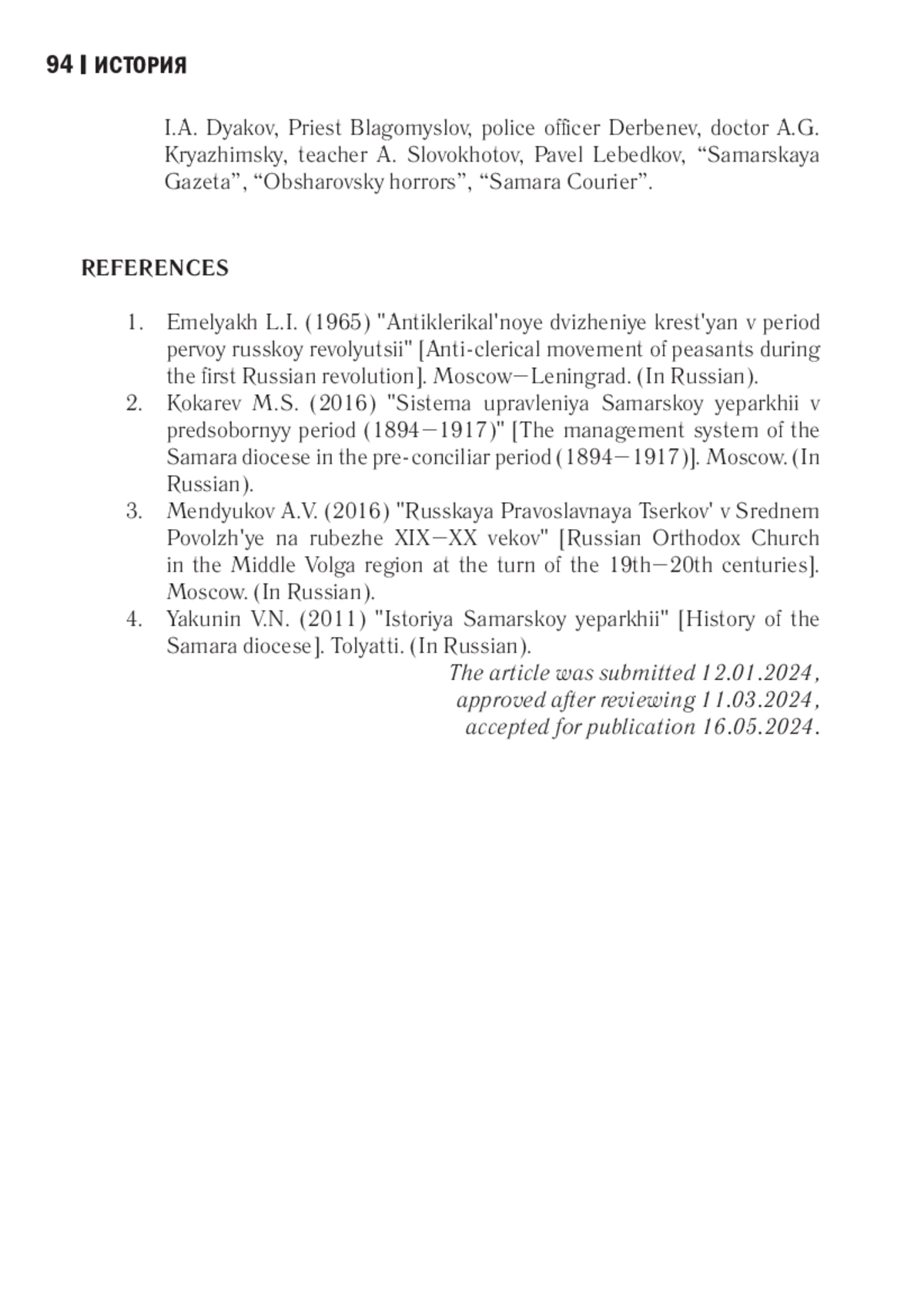 8. Якунин В. Н. История Самарской епархии. Тольятти: Издательско-полиграфический центр Поволжского государственного университета сервиса, 2011. 625 с. EDN: QVZJFD