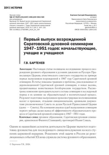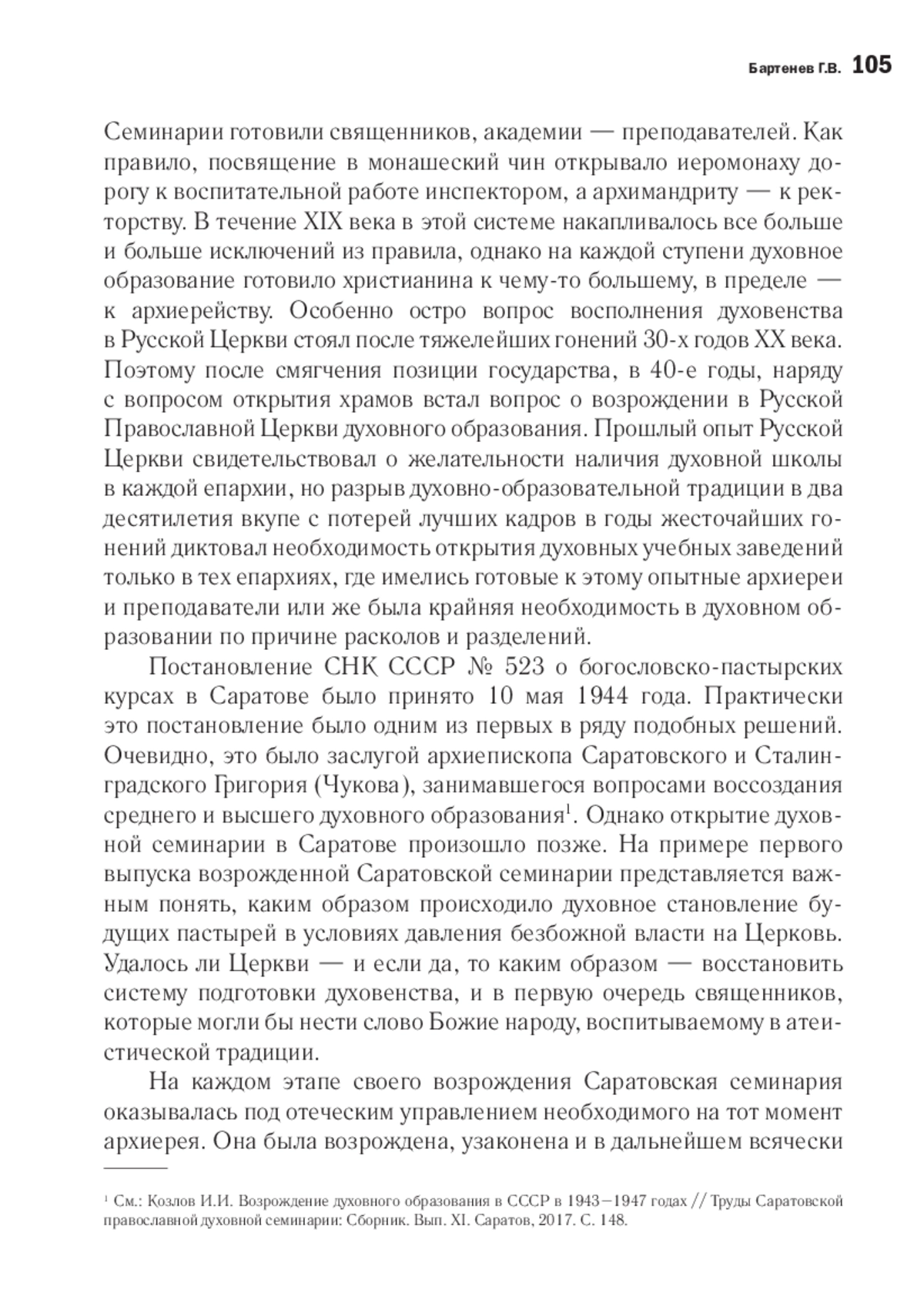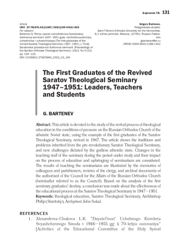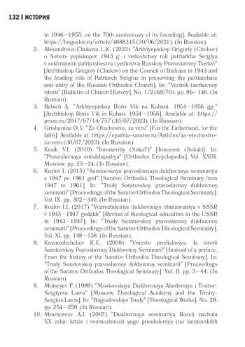26. Козлов И. И. Возрождение духовного образования в СССР в 1943-1947 годах // Труды Саратовской православной духовной семинарии: Сборник. Вып. XI. Саратов, 2017. С. 148-158. EDN: YQYULE