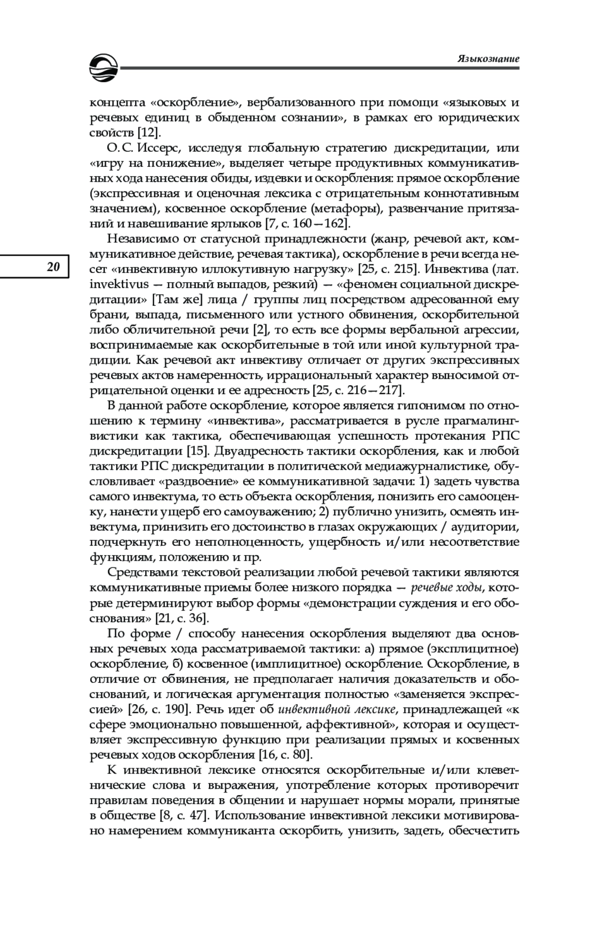 12. Кусов Г. В. Оскорбление как иллокутивный лингвокультурный концепт: автореф. дис. … канд. филол. наук. Волгоград, 2004. EDN: NHSXHV