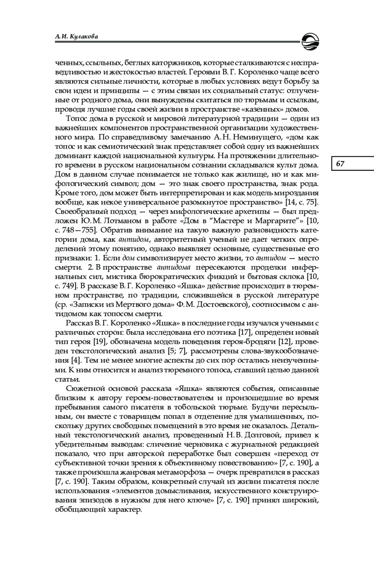 7. Долгова Н. В. Рассказ В. Г. Короленко “Яшка” (Текстологические наблюдения) // Текст в художественной литературе, публицистике и журналистике: материалы XIX Шешуковских чтений. М., 2014. С. 181-190.