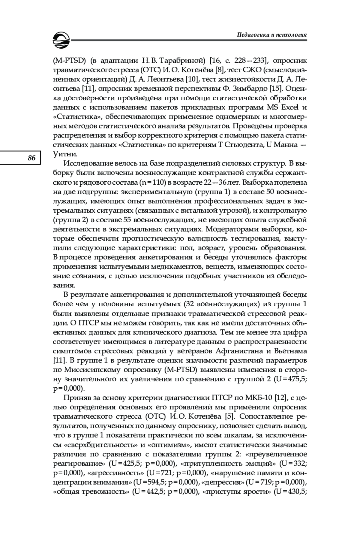 8. Котенёв И. О. Психологическая диагностика постстрессовых состояний // Вестник психосоциальной и реабилитационной работы. 2004. № 4. С. 30-63.