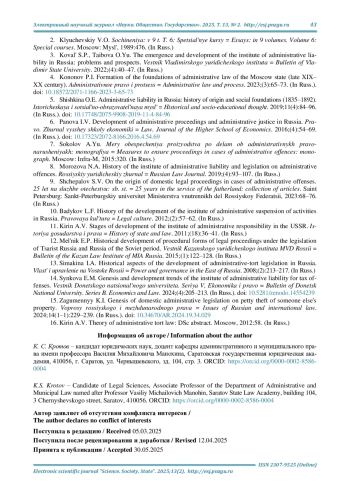 11. Кирин А. В. Этапы развития института административной ответственности в СССР // История государства и права. 2011. № 18. С. 36-41. EDN: OIYEXL
