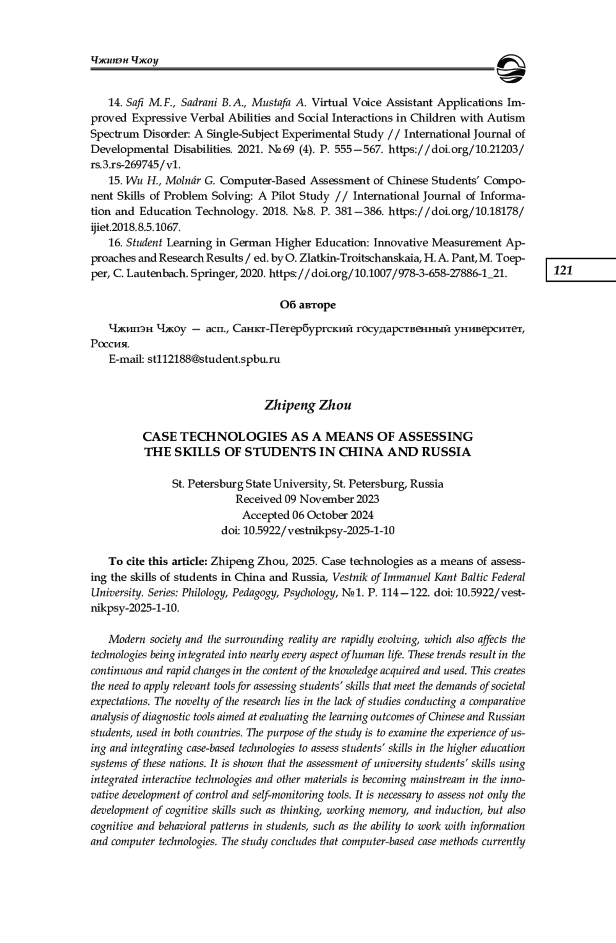 15. Wu H., Molnár G.Computer-Based Assessment of Chinese Students’ Component Skills of Problem Solving: A Pilot Study // International Journal of Information and Education Technology. 2018. № 8. P. 381-386. DOI: 10.18178/ijiet.2018.8.5.1067