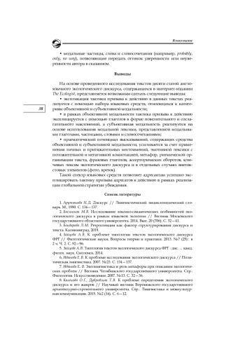 2. Басинская М. В. Исследование лексико-семантических особенностей экологического дискурса в рамках языковой экологии // Вестник Московского государственного областного университета. 2014. Вып. 20 (706). С. 32-41. EDN: TEWIVF