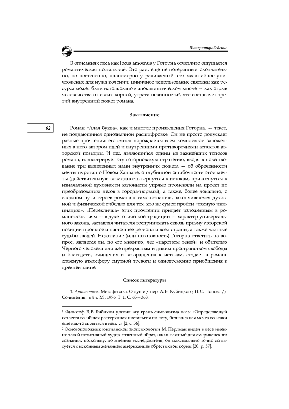 10. Deamer R. G. Hawthorne’s Dream in the Forest // Western American Literature. 1979. № 4. P. 327-339.