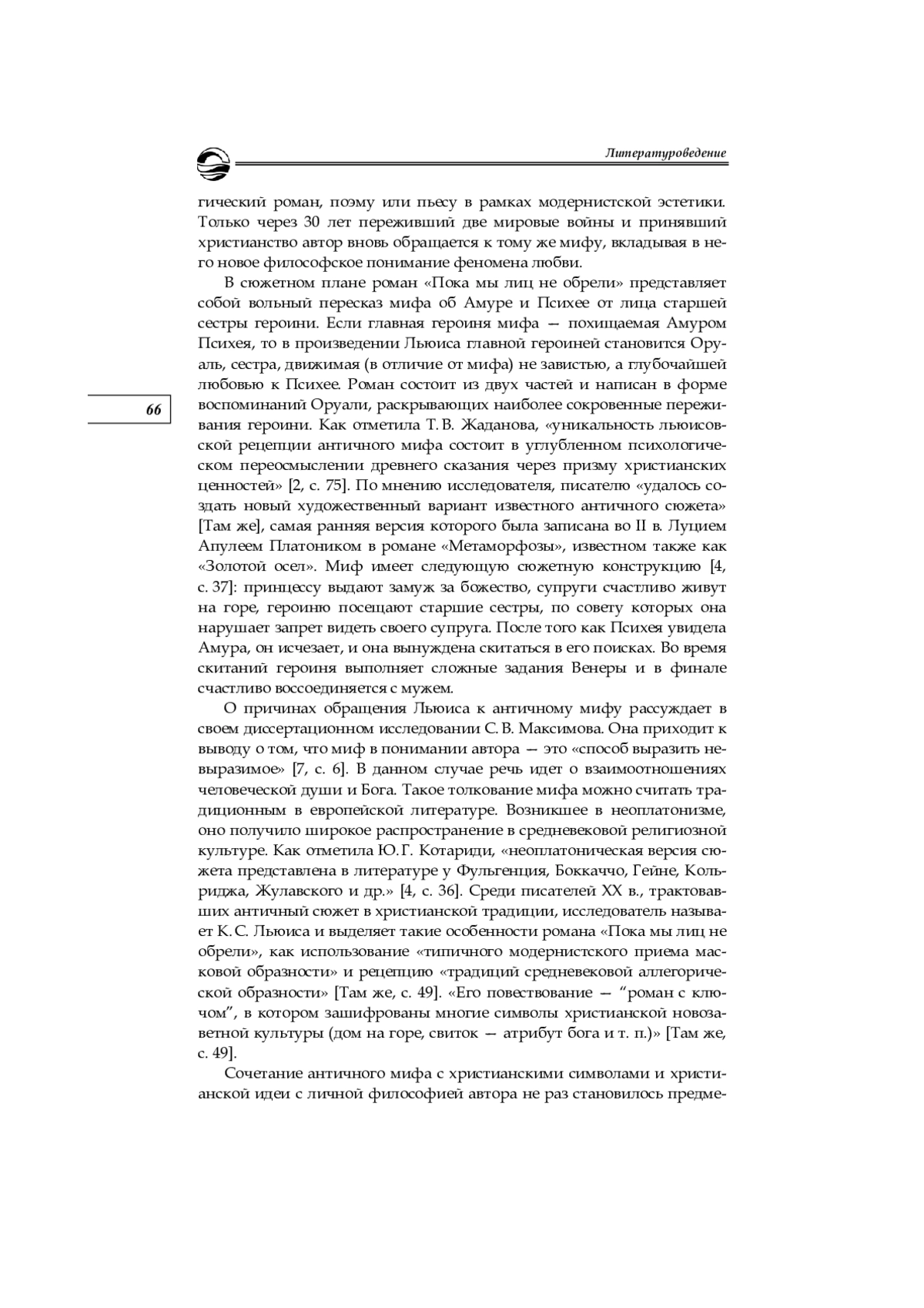 7. Максимова С. В. Античный миф в прозе К. С. Льюиса и Г. Э. Носсака 40-50-х гг.: дис. … канд. филол. наук. СПб., 2008. EDN: AKPZCZ