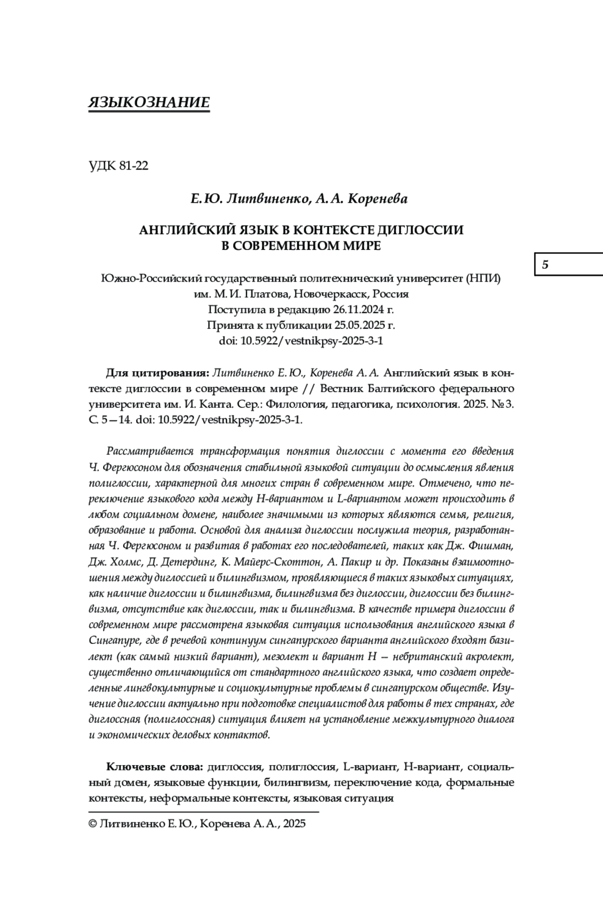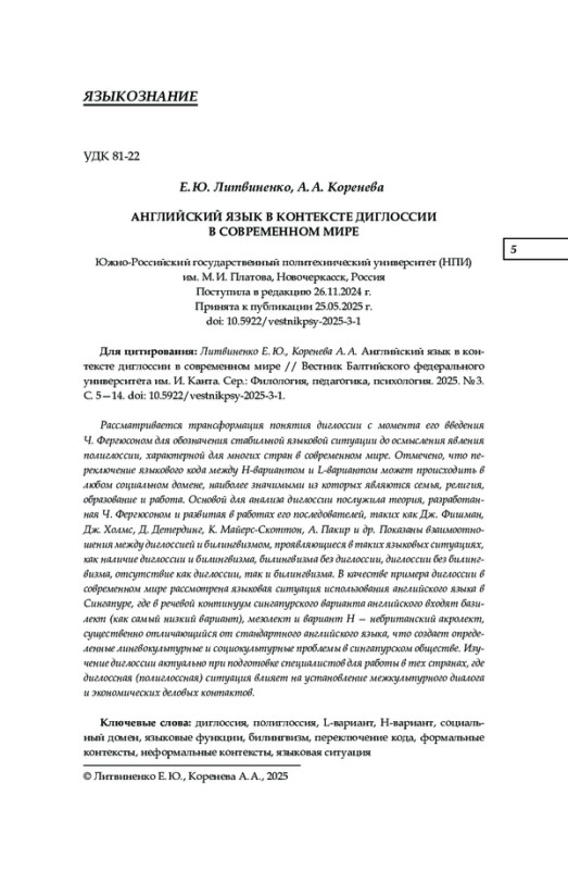 5. Faido S., Hilman H., Junaidi M. P. Diglossia: phenomenon and language theory // European Journal of Literature, Language and Linguistics Studies. 2019. № 3 (2). Р. 58-65.