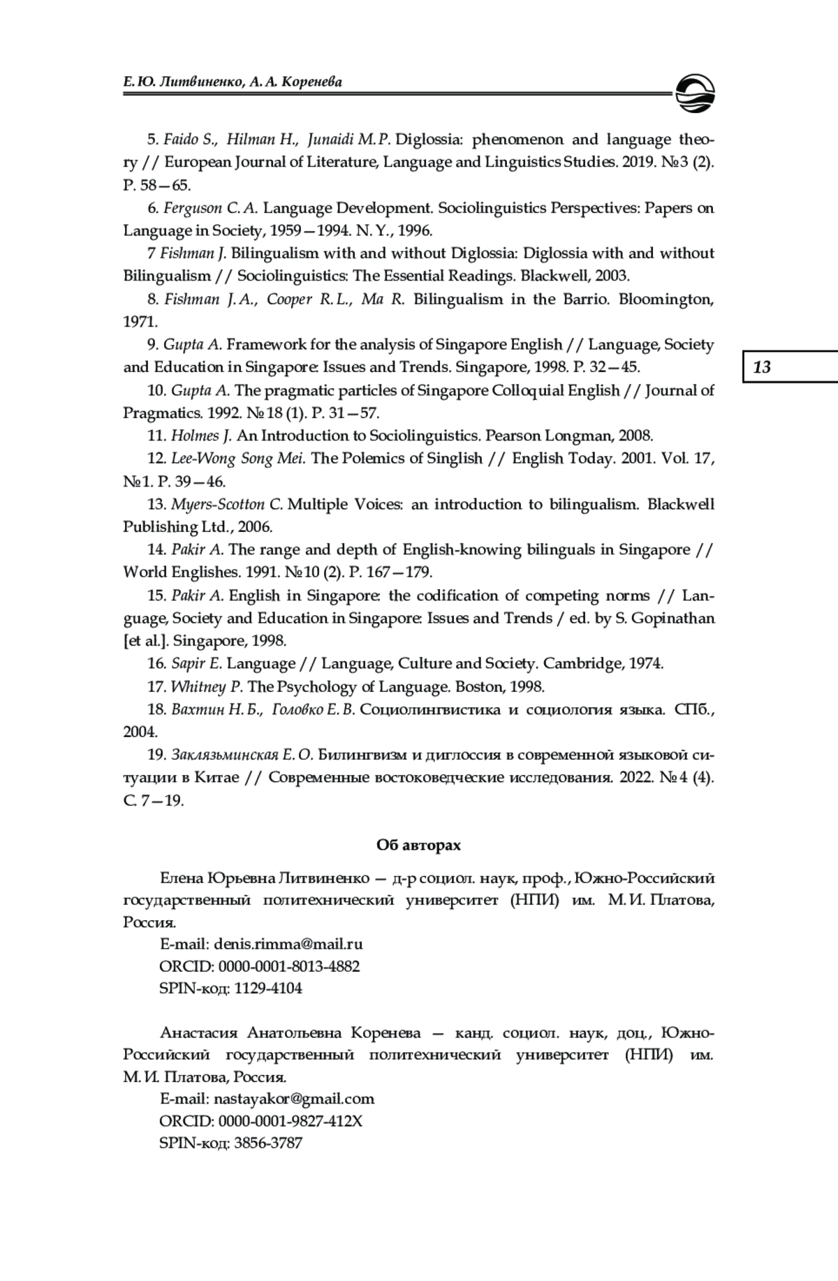 18. Вахтин Н. Б., Головко Е. В. Социолингвистика и социология языка. СПб., 2004. EDN: QRJCGJ