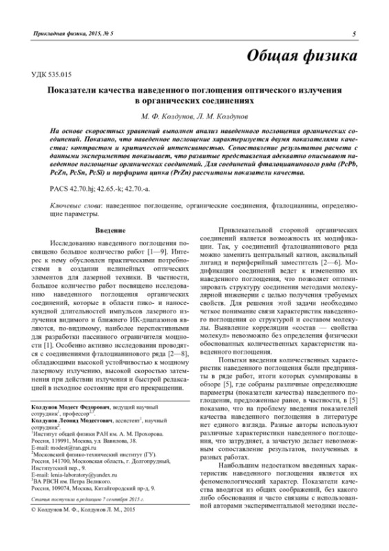 Колдунов М. Ф., Колдунов Л. М. Показатели качества наведенного поглощения оптического излучения в органических соединениях 5