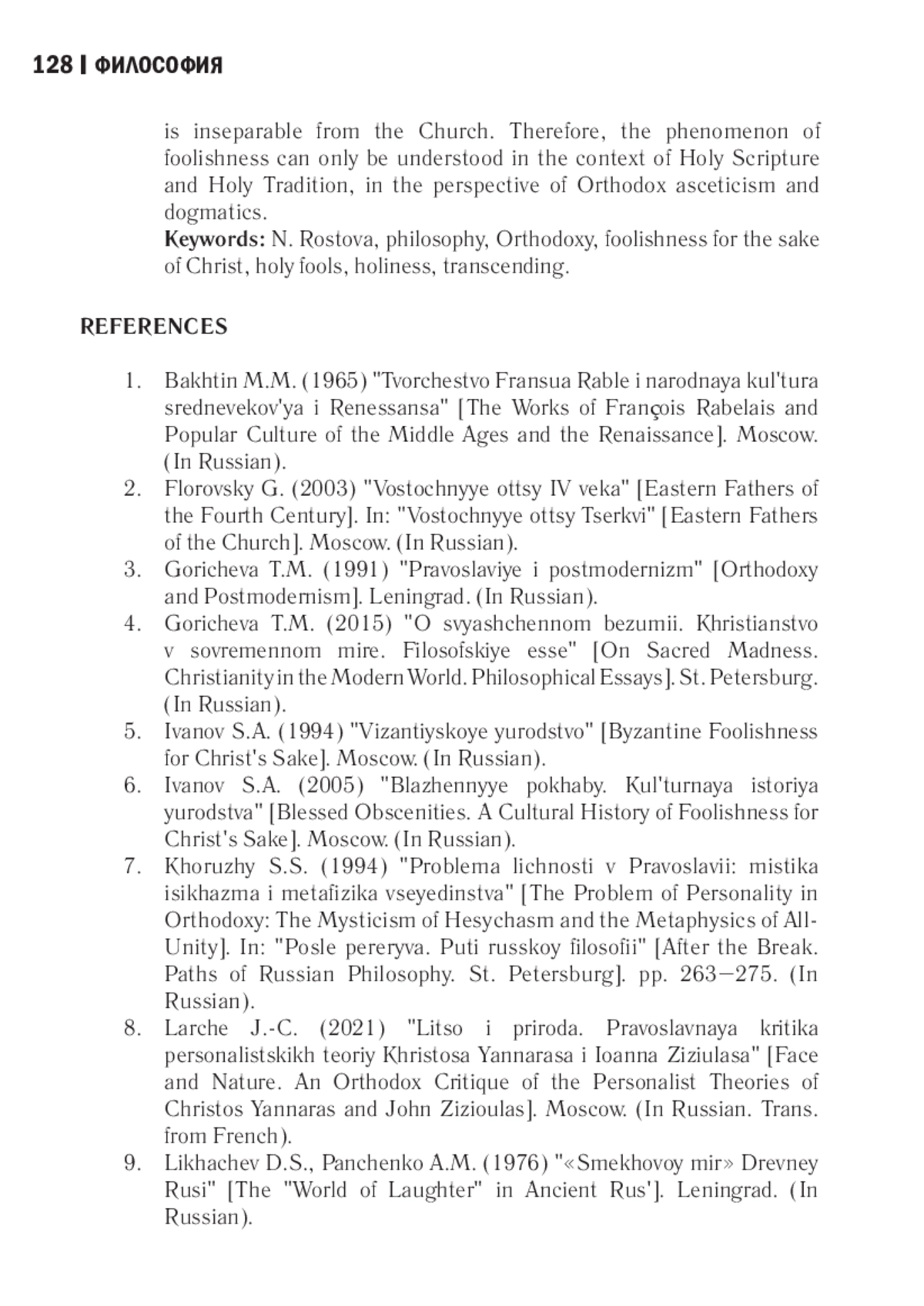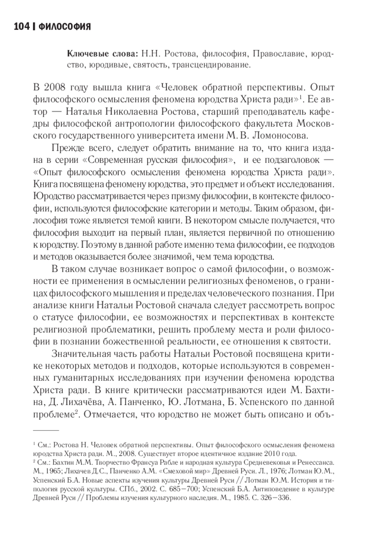 19. Ростова Н. Н. Человек обратной перспективы. Опыт философского осмысления феномена юродства Христа ради / под ред. проф. Ф. М. Гиренка. М.: МГИУ, 2008. 140 с.