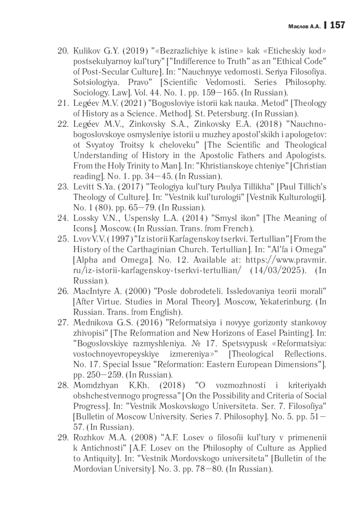 27. Куликов Г. Я. “Безразличие к истине” как “этический код” постсекулярной культуры // Научные ведомости. Серия: Философия. Социология. Право. 2019. Т. 44. № 1. С. 159-165. EDN: FYJNWD