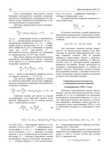 Якимов Ю. А., Климанов Е. А. Моделирование процессов геттерирования генерационно-рекомбинационных центров в кремнии при диффузии фосфора и бора 15