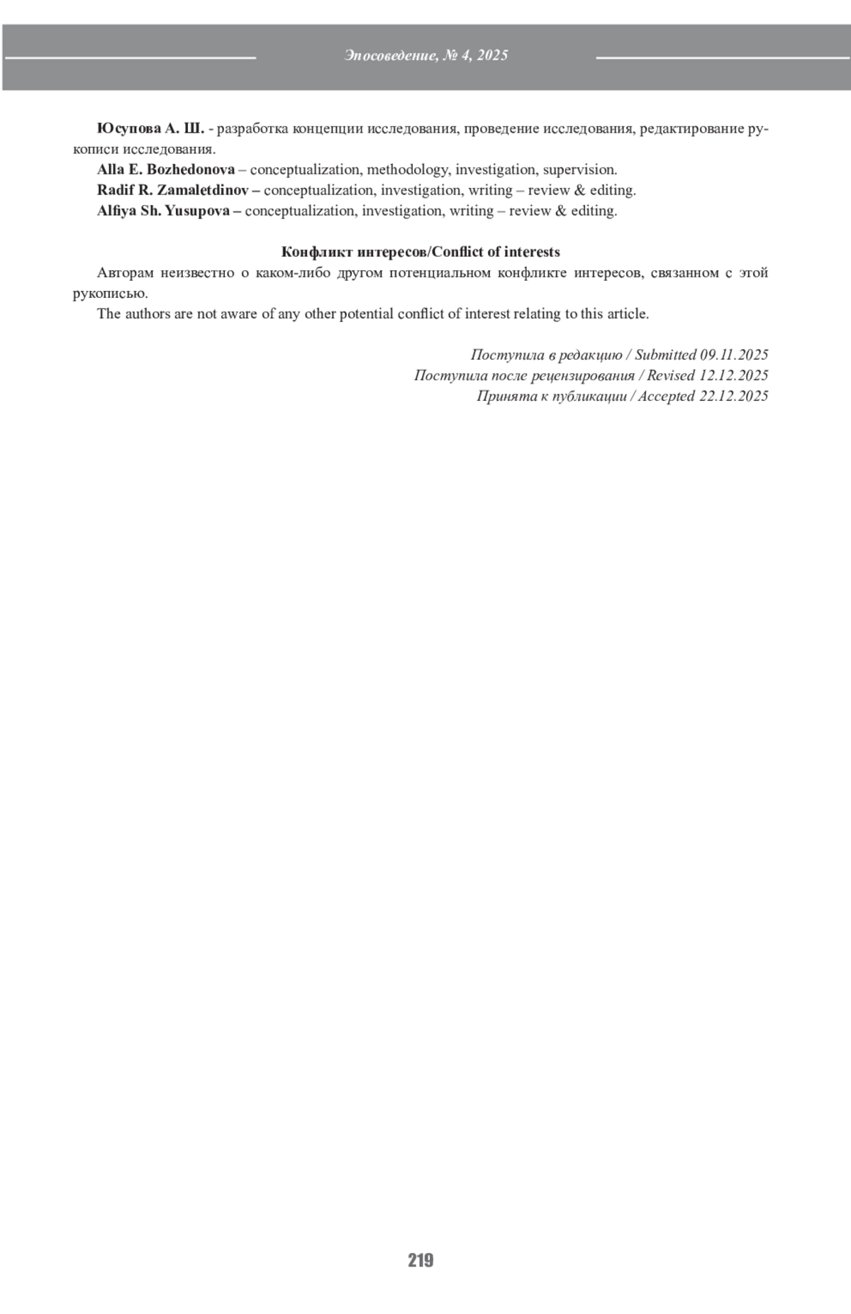 Научная новизна статьи заключается в анализе и систематизации ритуально-перформативных формул, функционирующих в тексте эпоса. Перформативность в тюркской эпической традиции выступает важнейшим компонентом повествовательной структуры и проявляется как в диалогах героев, так и в описаниях различных обрядовых действий. Эта перформативная связь преимущественно проявляется в виде речевых актов благопожелания, молитвы-благословения, приветствия, прощания, сообщения новостей, а также в контексте свадебных и похоронных обрядов, причитаний и других ритуальных форм.