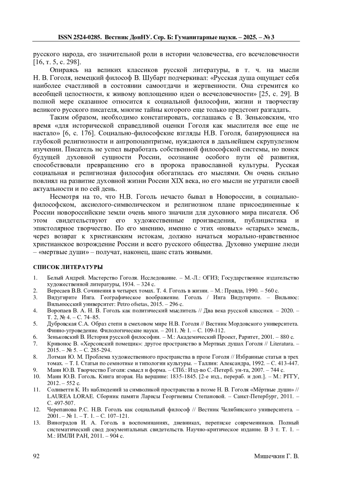 12. Черепанова Р.С. Н.В. Гоголь как социальный философ // Вестник Челябинского университета. - 2001. - № 1. - Т. 1. - С. 107-121.