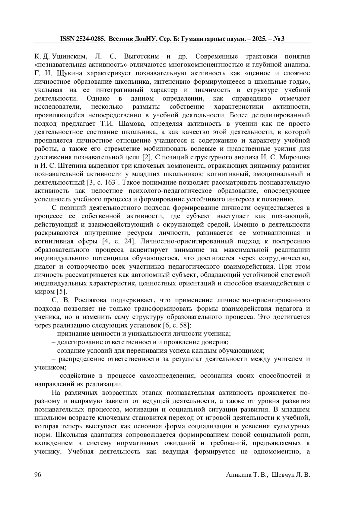 1. Балабаева Н. В. Понятие и сущность познавательной активности младших школьников // Вестник Шадринского государственного педагогического университета. - 2015. - № 2 (26). - URL: https://cyberleninka.ru/article/n/ponyatie-i-suschnost-poznavatelnoy-aktivnosti-mladshih-shkolnikov (дата обращения: 07.04.2025).