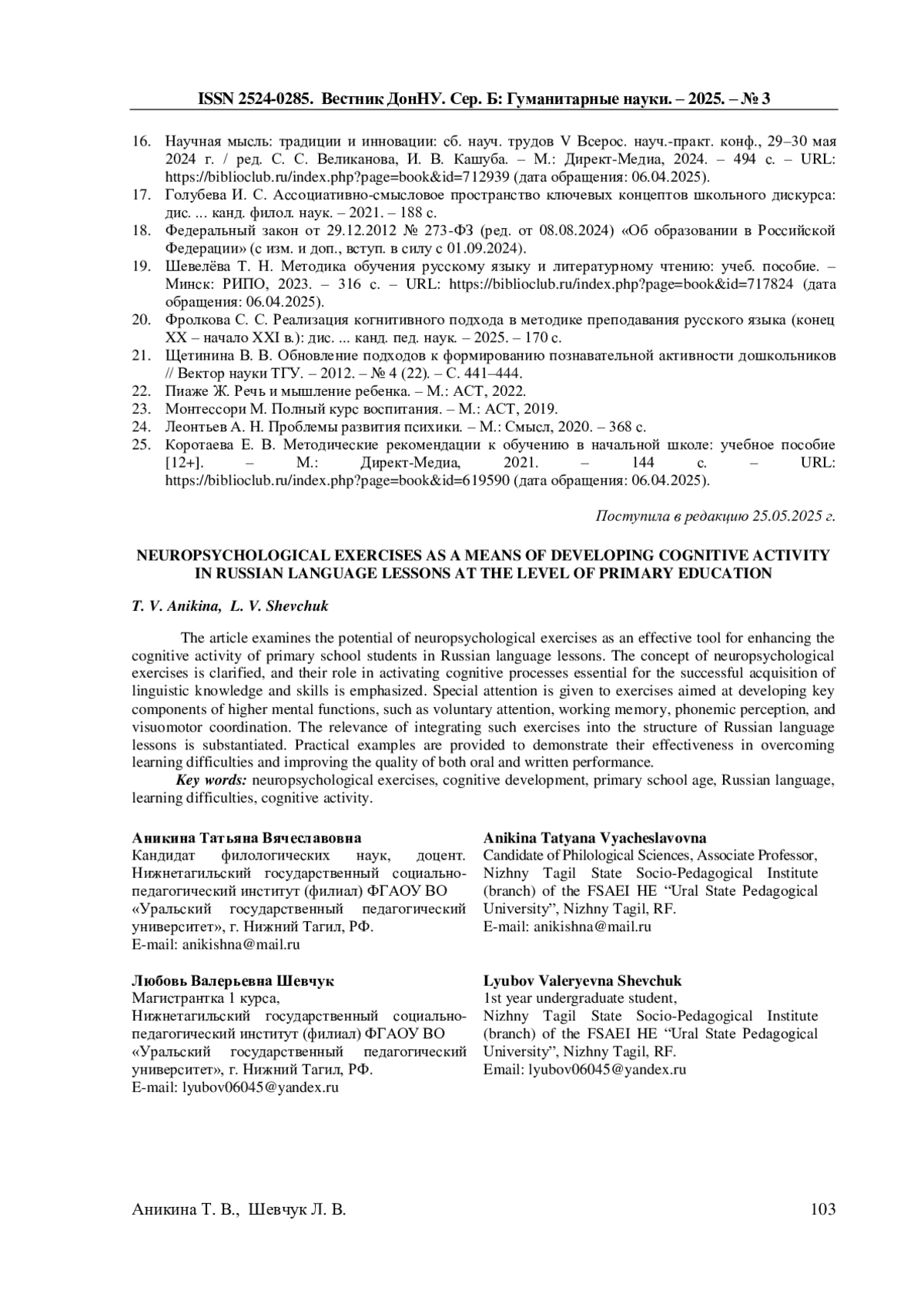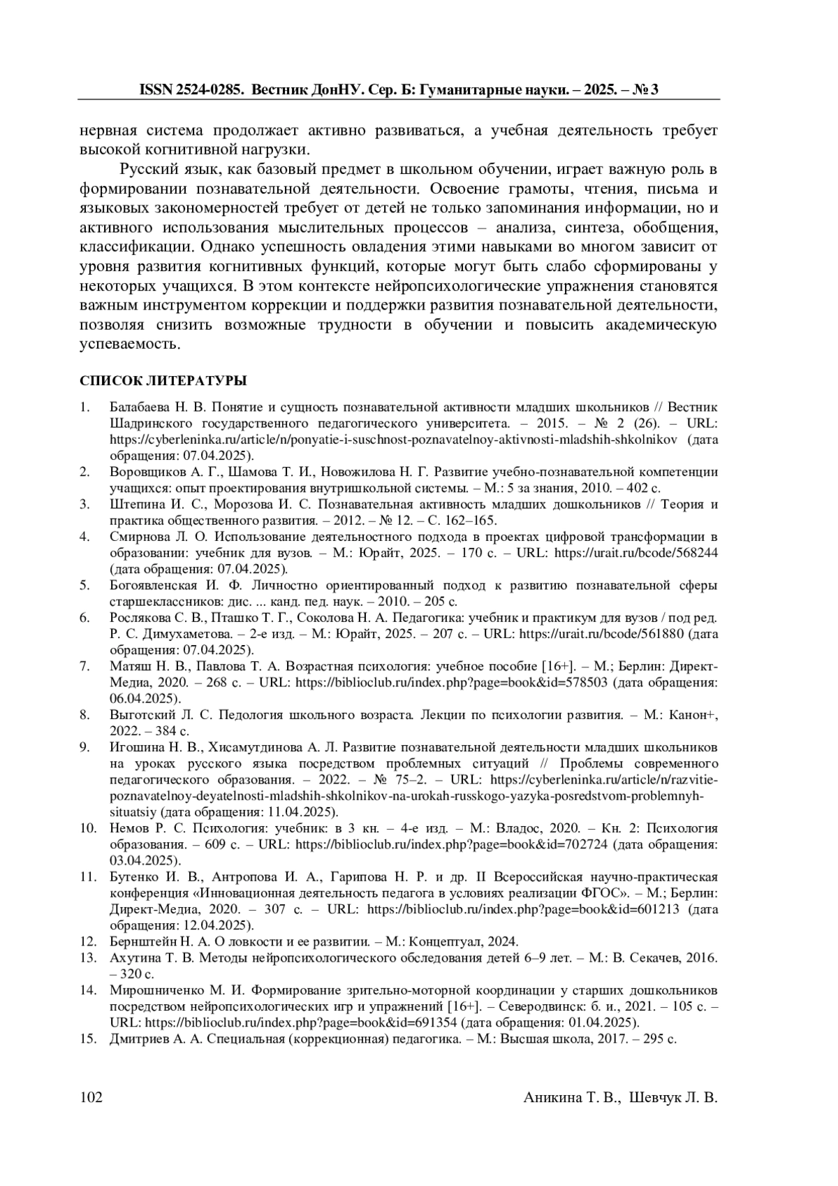14. Мирошниченко М. И. Формирование зрительно-моторной координации у старших дошкольников посредством нейропсихологических игр и упражнений [16+]. - Северодвинск: б. и., 2021. - 105 с. - URL: https://biblioclub.ru/index.php?page=book&id=691354 (дата обращения: 01.04.2025).