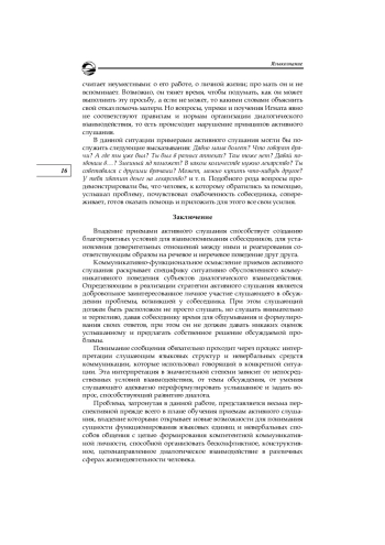 Актуальность исследования. Способность к коммуникативному взаимодействию определяет существование и жизнедеятельность любого языкового сообщества. Речевое взаимодействие и целенаправленное использование языка имеет диалогический характер, то есть любой дискурс создается коллективно, значение любого высказывания является результатом совместной (кооперативной) деятельности двух или более коммуникантов в результате обмена репликами-сообщениями: репликами-стимулами и репликами-реакциями. Следовательно, необходимые составляющие коммуникативного процесса — понимание собеседниками друг друга и обратная связь. С этих позиций актуальным представляется рассмотрение некоторых приемов активного слушания, обусловливающего конструктивный характер поведения коммуникантов, но не получившего в отечественной лингвистике должного освещения