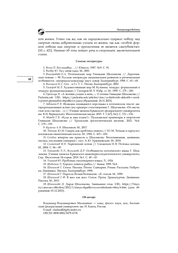 13. Таймазова Л. Л., Велиляева Д. Р. Особенности поэтического языка Г. Шпаликова. Ученые записки Крымского инженерно-педагогического университета. Сер.: Филология. История. 2018. № 1. С. 40-43.