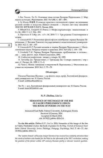 12. Чжао С. Мотив “изгнания” в творчестве В. Перелешина // Филология: научные исследования. 2019. № 1. С. 75-79. EDN: KVROCM