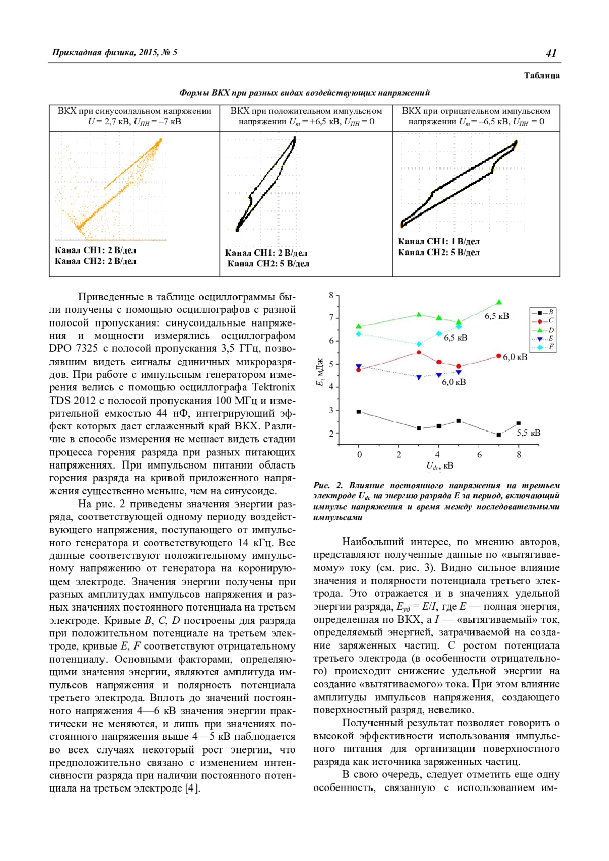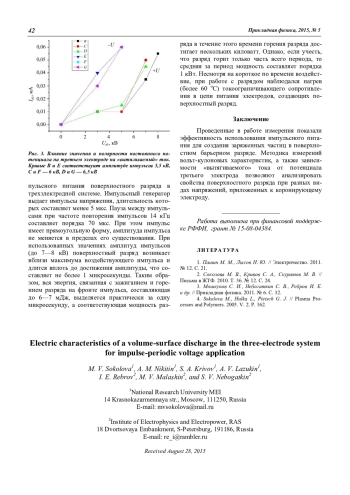 Соколова М. В., Никитин А. М., Кривов С. А., Лазукин А. В., Ребров И. Е., Малашин М. В., Небогаткин С. В. Особенности электрических характеристик объемно-поверхностного разряда в трехэлектродной системе в воздухе при импульсно-периодическом питании 39
