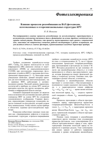 Яковлева Н. И. Влияние процессов рекомбинации на ВАХ фотодиодов, изготовленных в гетероэпитаксиальных структурах КРТ 59