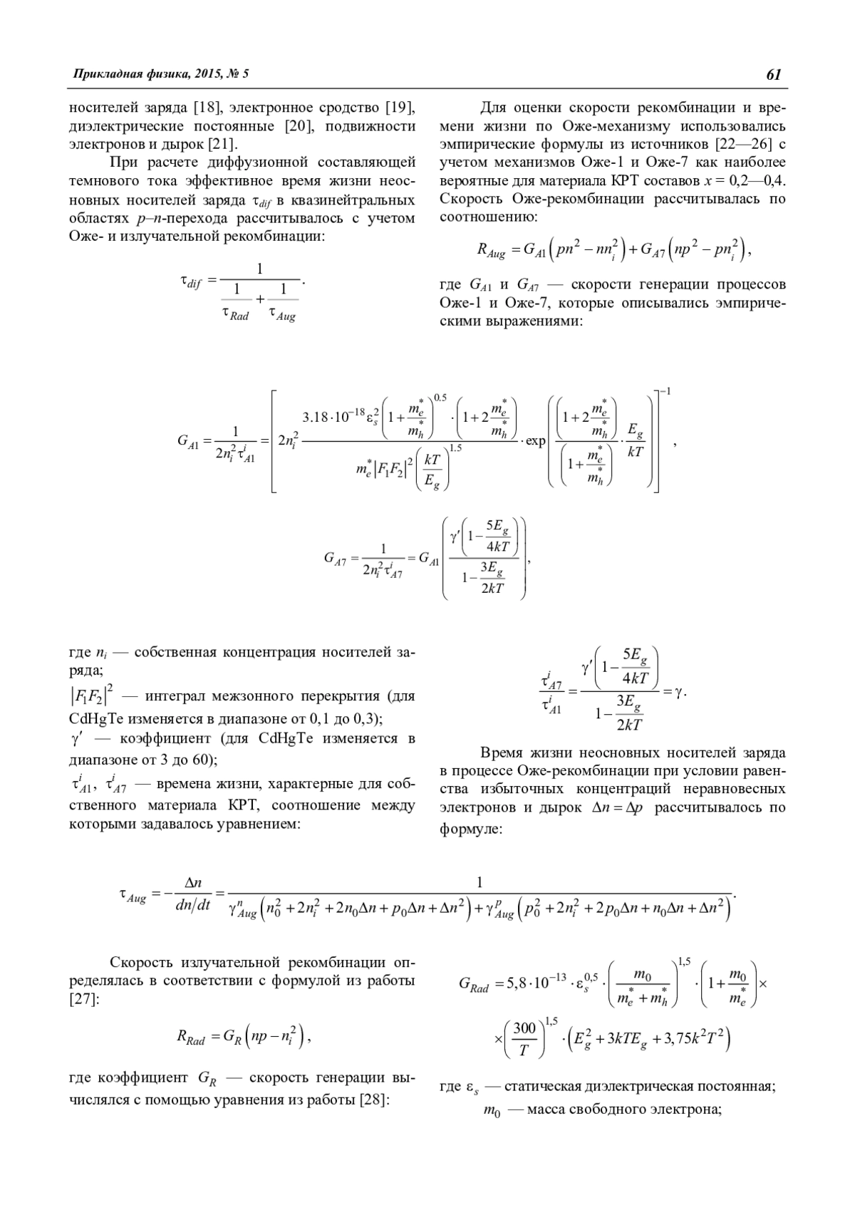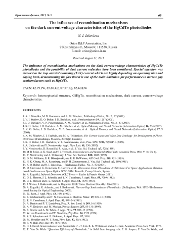 N. I. Iakovleva The influence of recombination mechanisms on the dark current-voltage characteristics of the HgCdTe photodiodes 59