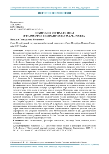 10. Коваленко Н. Г. Понятие “символ” и “символизм” в философии А. Ф. Лосева // Дни петербургской философии 2003: материалы Междунар. конф.: Метафизика искусства, мировая и петерб. традиции реалист. философии (г. Санкт-Петербург, 3-30 января 2004 г.). СПб.: Санкт-Петербургское философское общество, 2004. С. 206-208. EDN: UIATJN