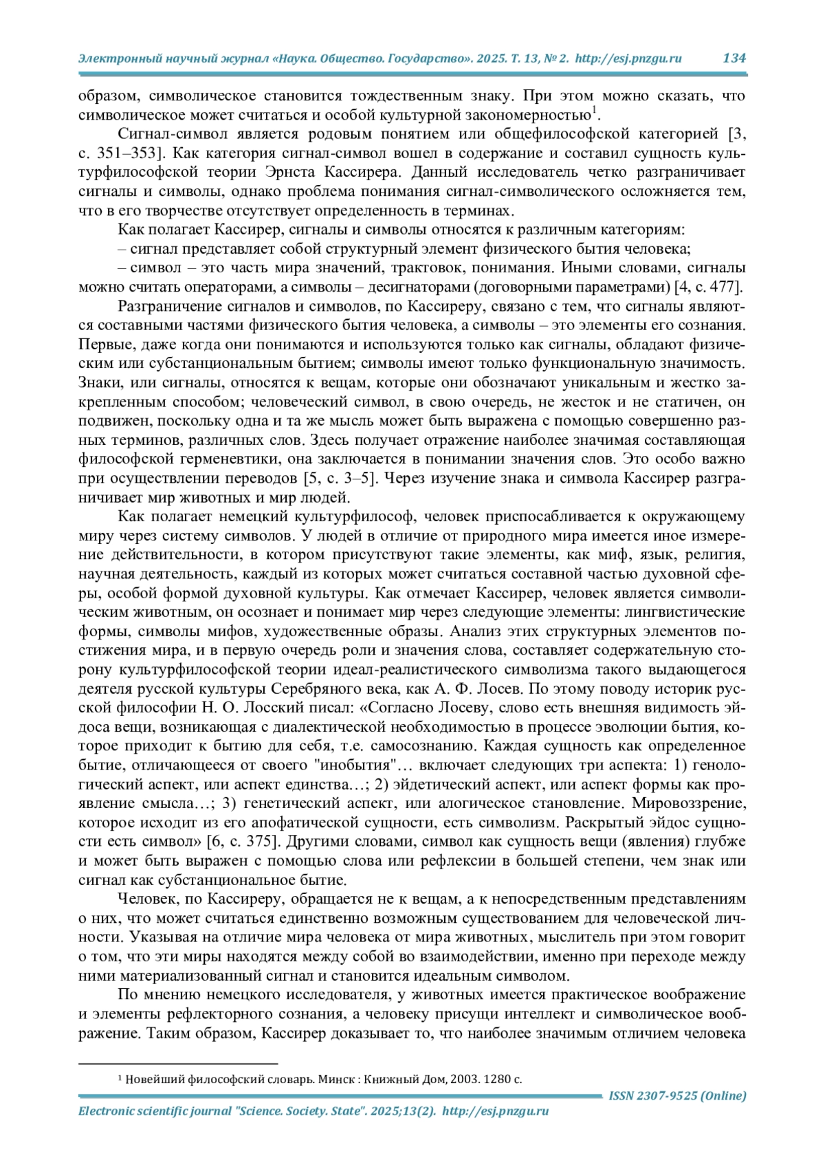 Актуальность и цели. Рассматривается актуальная для исследовательского поля философии культуры проблема соотношения природного и символического в ее исторической ретроспективе. Символ представляется в широком смысле слова как понятие, которое фиксирует способность материальных вещей и событий выражать идеальное содержание, отличное от их непосредственно-телесного бытия, на материале культурфилософских работ Э. Кассирера и А. Ф. Лосева. Выявление общего и особенного в философии символического в европейской и отечественной философской традиции стало основной целью данной работы. Для ее реализации были решены следующие задачи: определена специфика природно-животного и человечески-чувственного в теоретических изысканиях Кассирера; указана необходимость применения таких античных терминов, как «символ», «инобытие», «эйдос», «энергия» и др., в становлении картины символической реальности по философии Лосева.