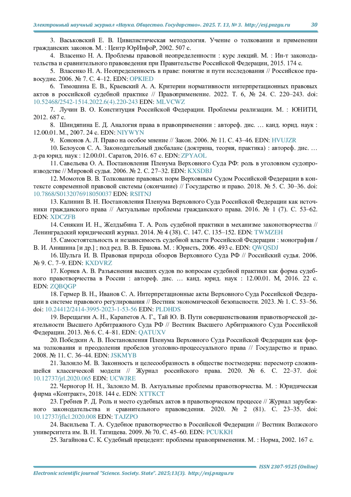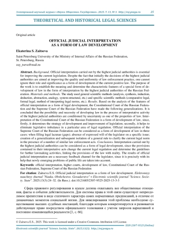 6. Тимошина Е. В., Краевский А. А. Критерии нормативности интерпретационных правовых актов в российской судебной практике // Правоприменение. 2022. Т. 6, № 24. С. 220-243. DOI: 10.52468/2542-1514.2022.6(4).220-243 EDN: MLVCWZ