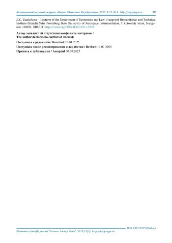 Выводы. Деприватизация представляет собой необходимый элемент трансформации экономики в условиях геополитических вызовов. Для ее дальнейшего развития требуется закрепление специальных положений в Военной доктрине РФ - 2025; разработка нормативного акта, систематизирующего критерии стратегической значимости предприятий; создание механизмов баланса между государственным контролем и рыночной эффективностью; учет международного опыта в сотрудничестве с дружественными странами.
