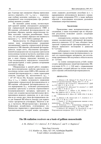 A. Sh. Abdinov, S. I. Amirova, R. F. Babayeva, and N. A. Ragimova The IR-radiation receivers on a basis of gallium monoselenide 75