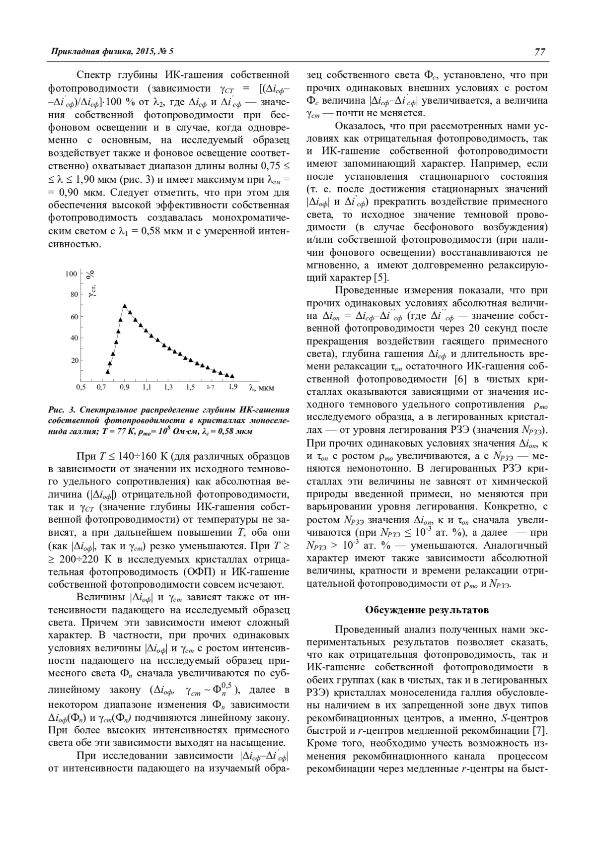 - наблюдаемая в этом полупроводнике ярко выраженная отрицательная фотопроводимость делает его перспективным материалом для изготовления приемников ИК-излучения в области вплоть до ~2,0 мкм;