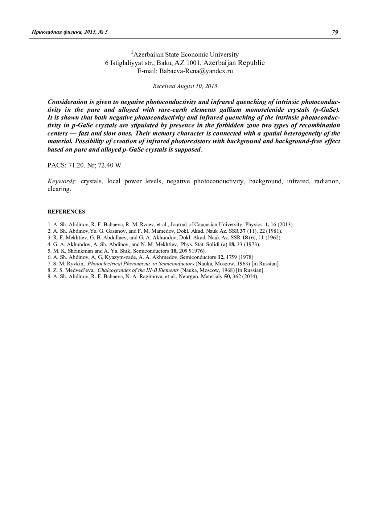 1. Абдинов А. Ш., Бабаева Р. Ф., Рзаев Р. М. и др. // Journal of Caucasian University. Physics. 2013. V. 1. P. 16.