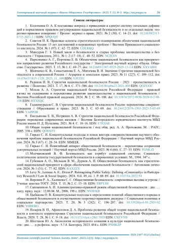 2. Советов И. К. Правовые аспекты стратегического планирования обеспечения национальной безопасности России: 15 лет достижений и нерешенных проблем // Вестник Прикамского социального института. 2024. № 1 (97). С. 62-72. EDN: UDLRKQ