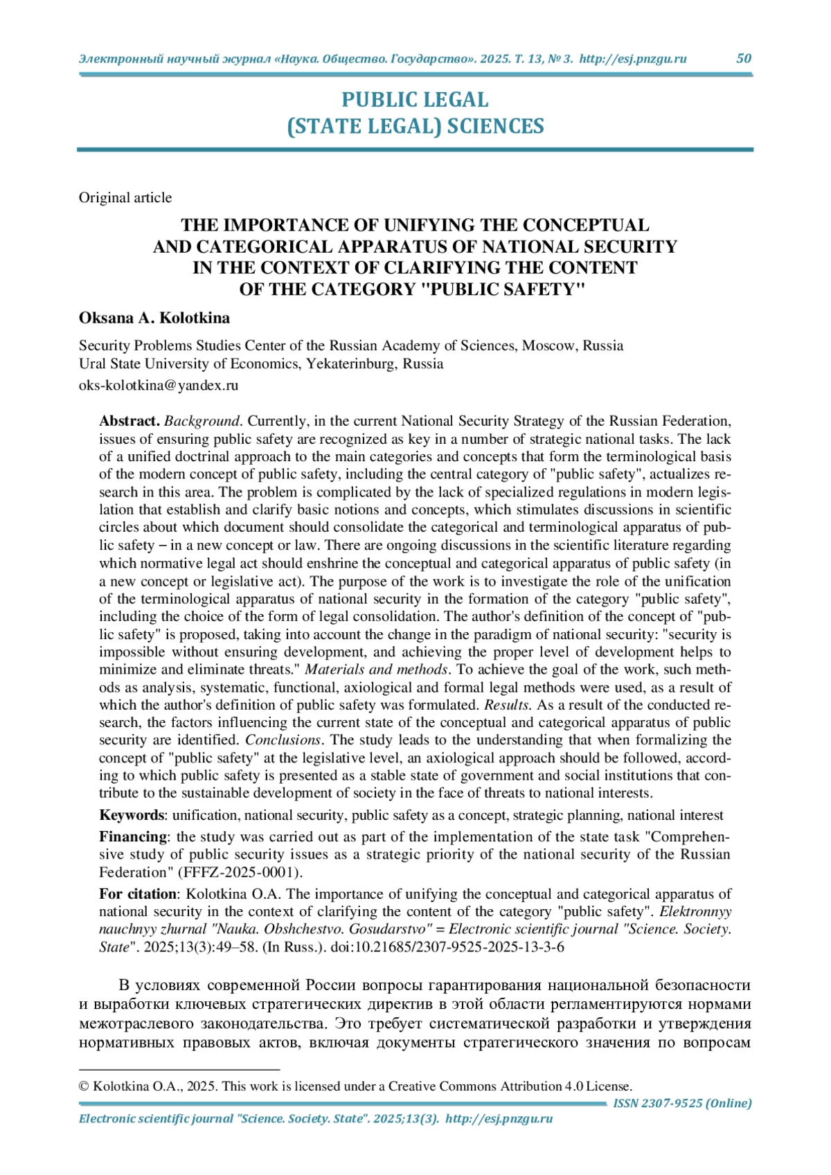 Выводы. Создание обновленных формулировок базовых понятий дает возможность иначе взглянуть на их функциональный потенциал и его применимость при изучении вопросов обеспечения общественной безопасности.
