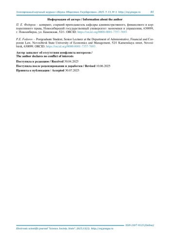 14. Голоманчук Э. В., Попов К. А., Астафурова О. А. Отдельные нюансы и особенности института обращения имущества в доход государства // Право и государство: теория и практика. 2023. № 10 (226). С. 243-246. DOI: 10.47643/1815-1337_2023_10_243 EDN: ZYJHYQ