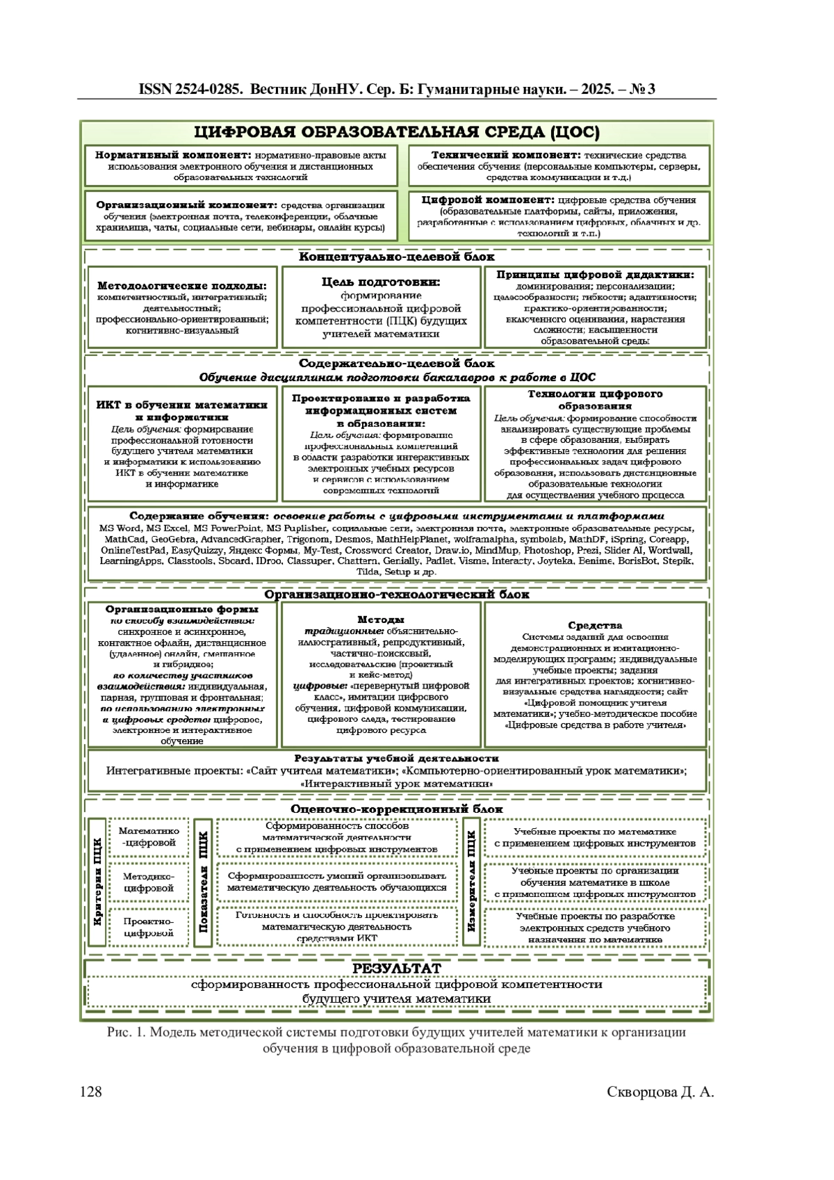 11. Романова К.Е. Моделирование процесса формирования готовности бакалавров - будущих учителей труда (технологии) к профессиональной деятельности в условиях цифровой образовательной среды / К.Е. Романова, С.Ю. Коэн // Педагогическая информатика. - 2025. - № 2. - С. 89-103. EDN: JKJVCP