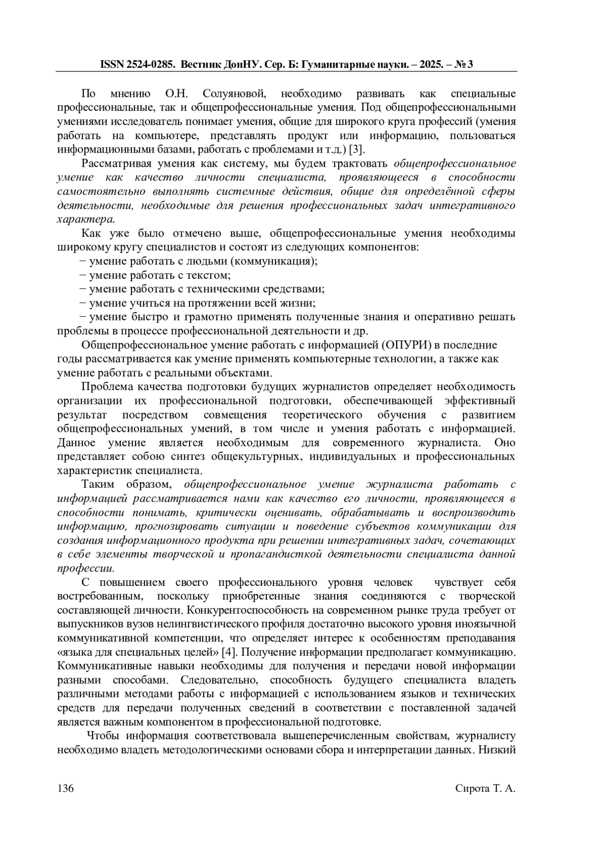 3. Солуянова О. Н. Развитие общепрофессионального умения работать с информацией в иноязычном обучении студентов нелингвистических вузов: автореф. дис.. канд. пед. наук: 13.00.08 / Солуянова Ольга Николаевна; Волжский гос. инж-пед. ун-т. - Нижний Новгород, 2011. - 22 с. EDN: QHJPGL