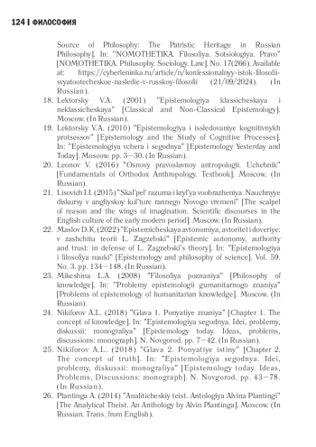 24. Маслов Д.К. Эпистемическая автономия, авторитет и доверие: в защиту теории Л. Загзебски // Эпистемология и философия науки. 2022. Т. 59. № 3. С. 134-148. EDN: WWSNCA