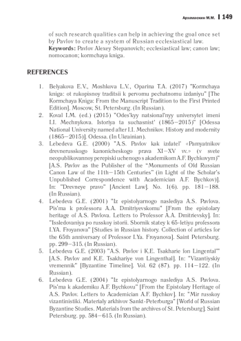 21. Лебедева Г.Е. А.С. Павлов как издатель “Памятников древнерусского канонического права XI-XV вв”. (в свете неопубликованной переписки ученого с академиком А. Ф. Бычковым) // Древнее право. 2000. № 1(6). С. 181-188.