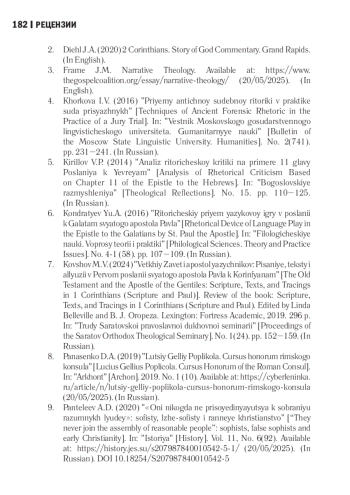 4. Кириллов В.П. Анализ риторической критики на примере 11 главы Послания к Евреям // Богословские размышления. 2014. № 15. С. 110-125.
