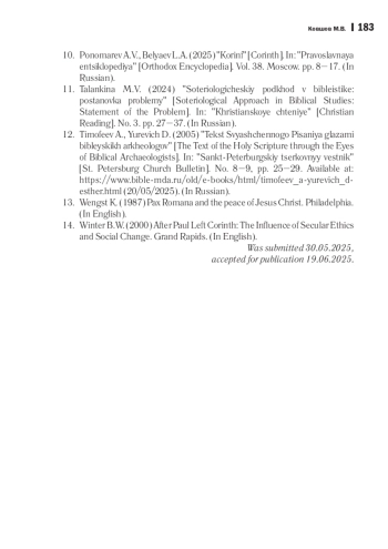 10. Пономарёв А.В., Беляев Л.А. Коринф // Православная энциклопедия / под ред. Святейшего Патриарха Московского и всея Руси Кирилла. Т. 38. М.: ЦНЦ Православная энциклопедия, 2015. С. 8-17.
