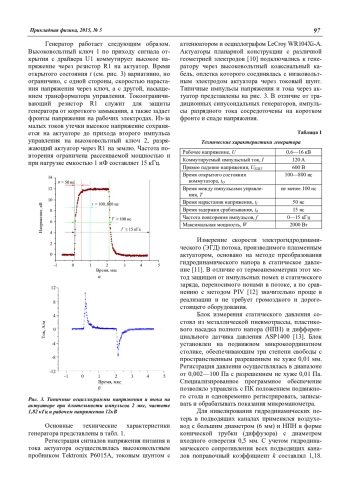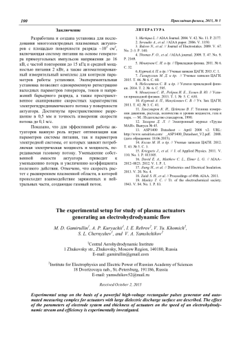 Гамируллин М. Д., Курячий А. П., Ребров И. Е., Хомич В. Ю., Чернышев С. Л., Ямщиков В. А. Экспериментальная установка для исследования плазменных актуаторов, создающих электрогидродинамический поток 95