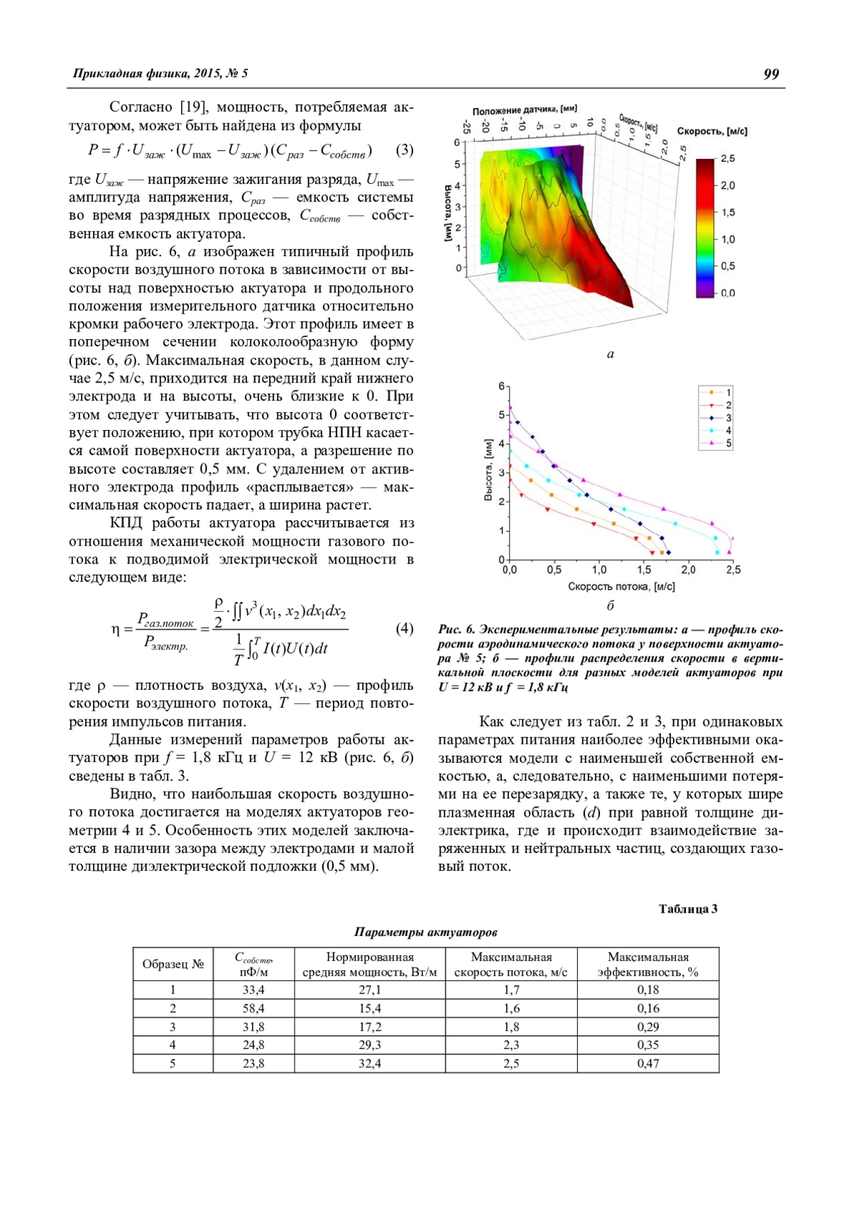 Показано, что для эффективной работы актуаторов важную роль играет оптимизация как параметров системы питания, так и параметров электродной системы, от которых зависят потребляемая электрическая мощность и мощность, передаваемая газовому потоку. Уменьшение собственной емкости актуатора приводит к уменьшению потерь и увеличению коэффициента полезного действия. Отмечено, что скорость растет с расширением плазменной области, в которой происходит взаимодействие заряженных и нейтральных части, создающее газовый поток.