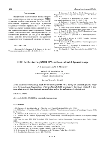 P. A. Kuznetsov and I. S. Moshchev ROIC for the starring SWIR FPAs with an extended dynamic range 107