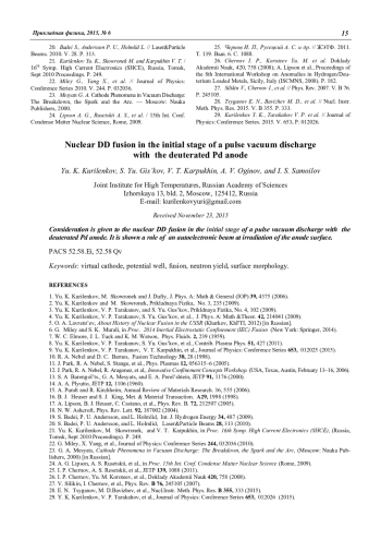 9. Kurilenkov Y. K., Tarakahov V. P., Karpukhin V. T., et al. // Journal of Physics: Conference Series. 2015. V. 653. P. 012025.