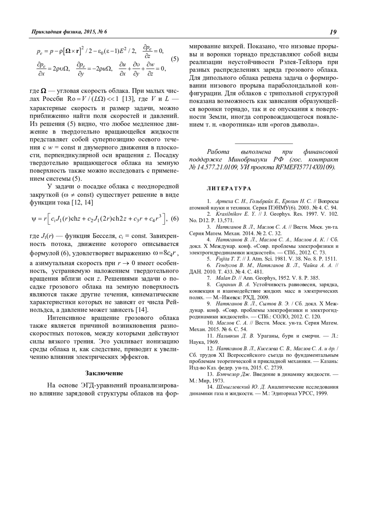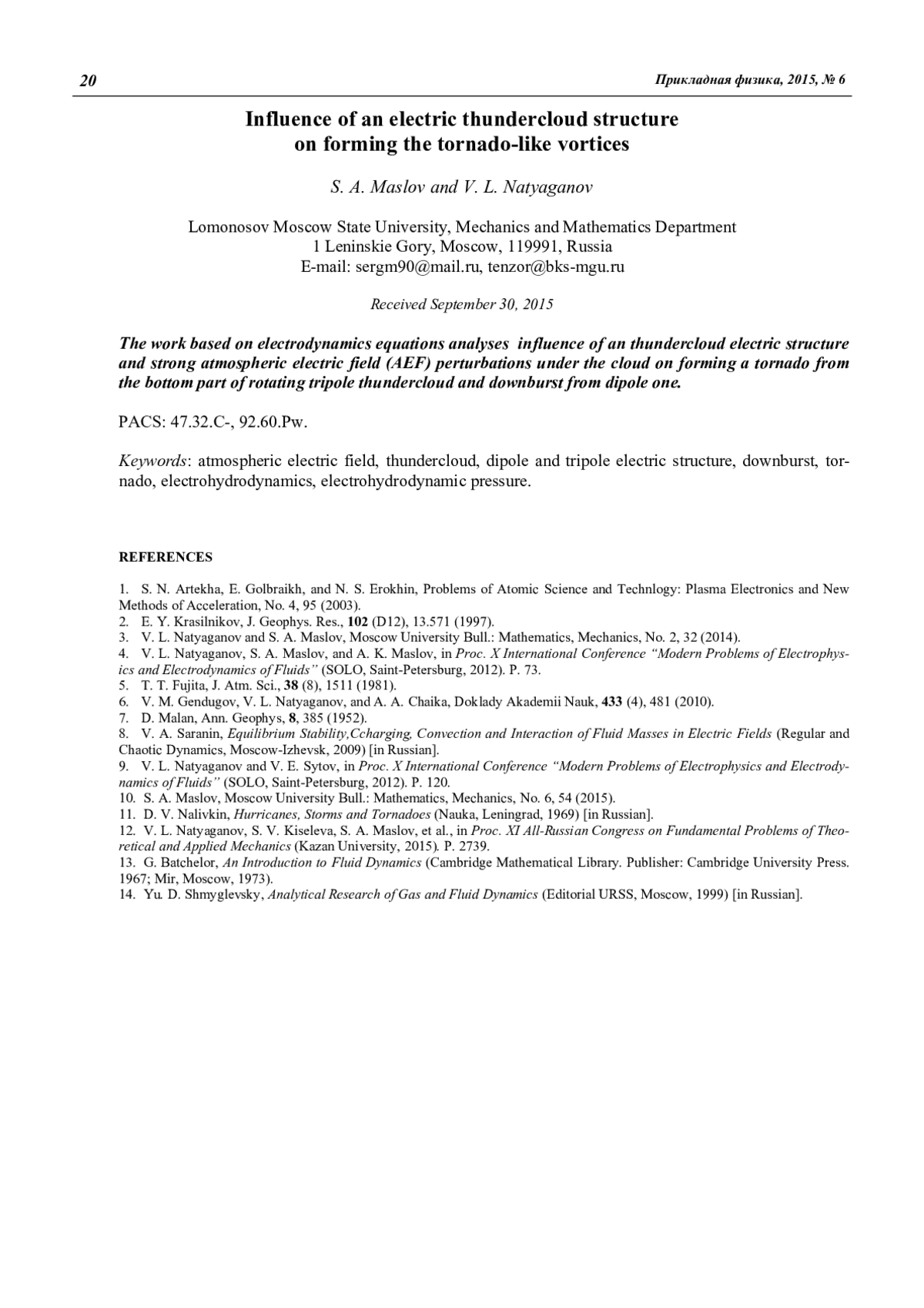 Маслов С. А., Натяганов В. Л. Влияние зарядовой структуры грозовых облаков на формирование торнадоподобных вихрей 16