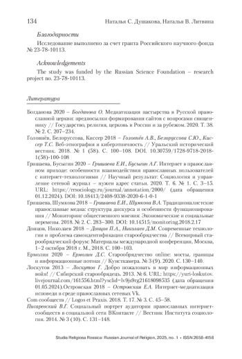 4. Гришаева, Шумкова 2018 - Гришаева Е.И., Шумкова В.А. Традиционалистские православные медиа: структура дискурса и особенности функционирования // Мониторинг общественного мнения: Экономические и социальные перемены. 2018. № 2. С. 283-300. https://doi.org/10.14515/monitoring.2018.2.17